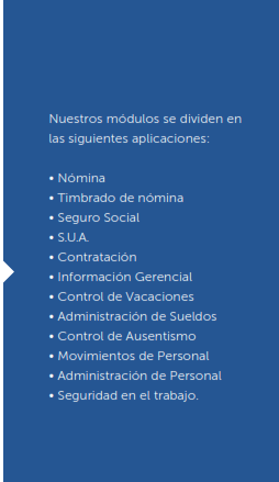Nuestro PropósitoNuestro propósito es que usted tenga la mejor solución a las necesidades particulares de su organización, garantizándole una automatización en sus procesos actuales y adaptando la mejor administración y eficiencia al departamento de Recursos Humanos con un sistema que se diseña a su medida.